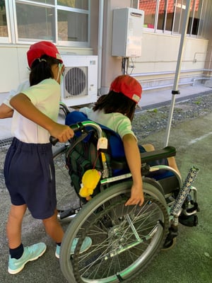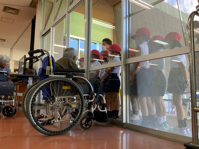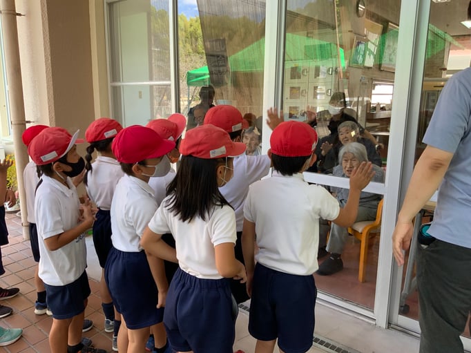 施設からのお知らせ · 2021/10/08 陵南小学校2年生の皆さんが職場見学にきてくれました 10月5日に陵南小学校2年生54名の児童の皆さんが生活科の授業で施設見学に来てくださいました。 コロナ下で屋内の見学・入居者の方々との直接の交流は出来ませんでしたが、窓越しにご入居者の方々と交流されたり、屋外で車椅子の体験をしてもらったりしました。 入居者の方々に手書きのお手紙のプレゼントも頂き、元気な子供たちの姿を見て、入居者の方々もとても喜ばれていました。 陵南小学校2年生の皆さん、先生方ありがとうございました。 tagPlaceholderカテゴリ: